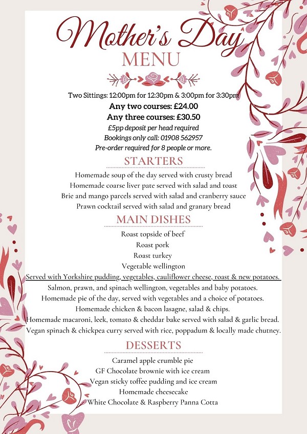 It's advisable to book a table by phoning the pub on 01908 562957.